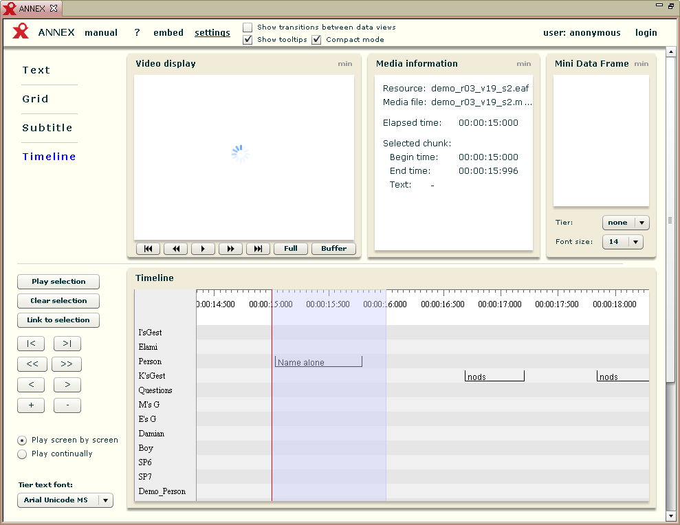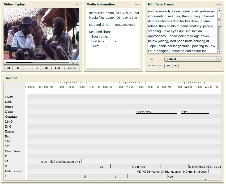 Diese Sicht ähnelt dem Zeitleistenbetrachter in ELAN. Sie zeigt die